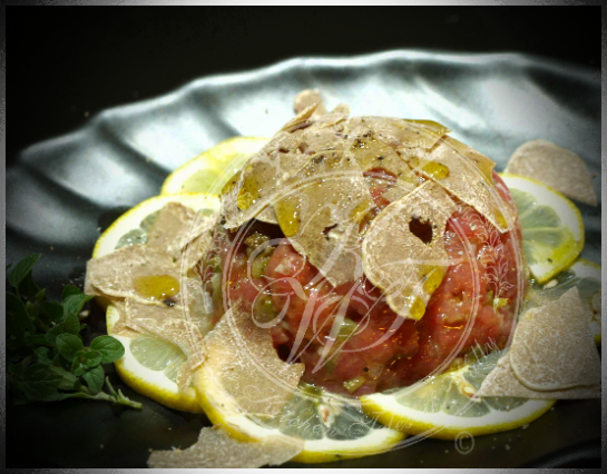 Le tartare sono CONDITE. So benissimo che qualcuno si risentirà per questo abbinamento ma sinceramente "degustibus non disputandum est" dunque non prendiamoci in giro quando vi propongono al ristorante una tartare ... se non è CONDITA non e degna di chiamarsi in tale maniera. Il tartufo aggiunto è essenzialmente un vezzo; sappiate "va" usato come condimento niente di più.