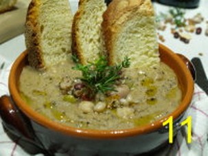 Degli amici, al ritorno da una vacanza in Toscana, mi hanno regalato questo sacchetto di mix di legumi. Visto la stagione abbiamo deciso di utilizzarle per una ricetta classica aggiungendo qualche ingrediente che renderà questa zuppa particolarmente gustosa e salutare. Non potevamo che abbinare a questa ricetta un buon olio toscano e del croccante pane di questa meravigliosa regione. Il risultato è garantito.